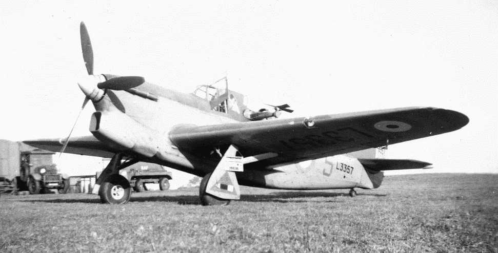 Henley L3357 pictured in what looks like a Royal Navy colour scheme with light grey undersides that extend up the side of the fuselage. Or are the undersides yellow? Henleys did serve with Royal Navy units, No 771 Squadron in the Orkneys and the Navy Co-operation unit at Gosport. But this particular Henley is listed as serving with No 1 Anti-Aircraft Co-operation Unit (1AACU) at Farnborough. It crashlanded near Bootle in Lancashire in July 1942.