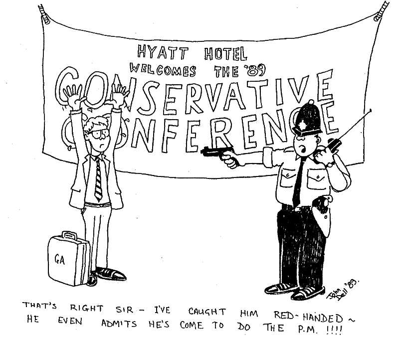 General Automation Technical Newsletter 1989. The company looked after the computer systems at the big Hyatt hotel in Birmingham where the PM Maggie Thatcher stayed during the 1989 Conservative party conference. Security was tight following the Brighton bombing of 1984. "P.M." stood for "Preventative Maintenance" in the company's vernacular.