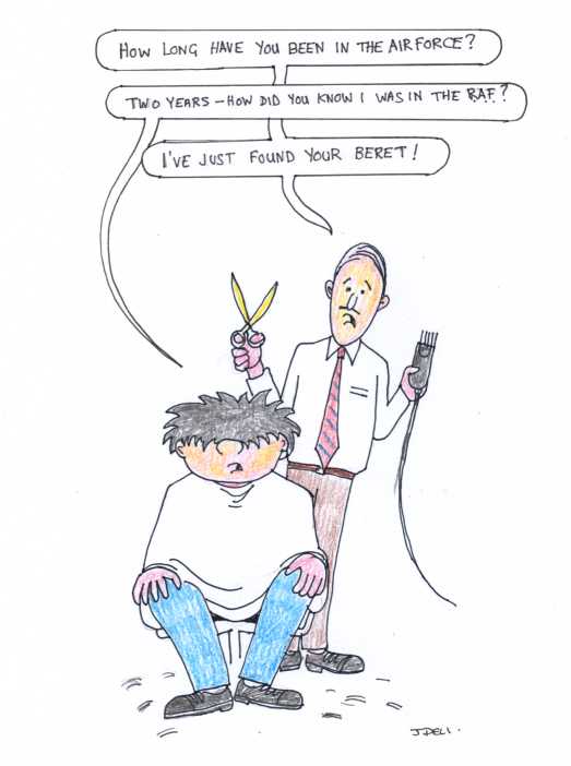 Cartoon I did for the station barber at RAF Buchan.