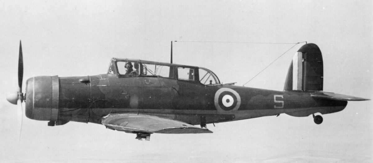 Blackburn Skua. Note the gun barrel poking out of its recess and the slight kink in the trailing edge of the wing near the wing root.