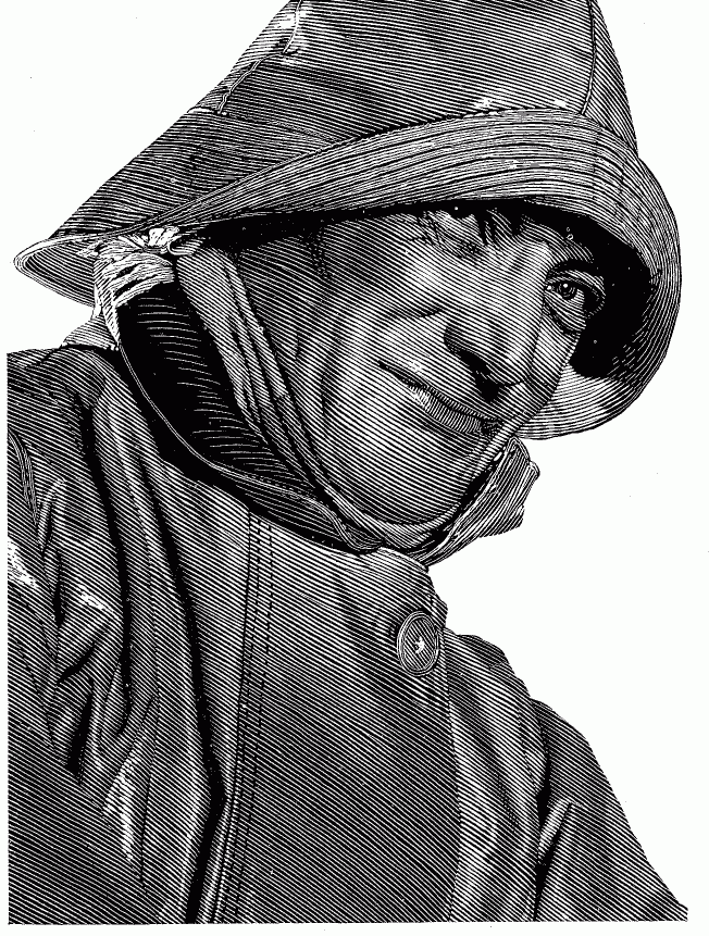 Above is a work on scraper-board by the illustrator William George Easton. I have always considered it an outstanding work, most people I show it to assume it is a photograph, or that it was produced by some photographic process. No, its just a talented man scraping white lines on a piece of board. The humanity of the subject contrasts with the cold clinical way he has used the lines to build up the picture. Finding virtually nothing of his work on the Internet I just had to put this up as an example of true craftsmanship. Easton was born in London in 1879 and studied art at Bolt Court School of Photoengraving and Lithography and the Kensington School. Listed in the art directories as a painter, illustrator and designer he exhibited 5 times at the Royal Academy. A fuller biography of him can be found at <this link> on the website of Bob Forrest. It also contains links to other examples of Easton's scraperboard work.