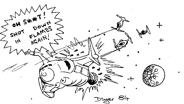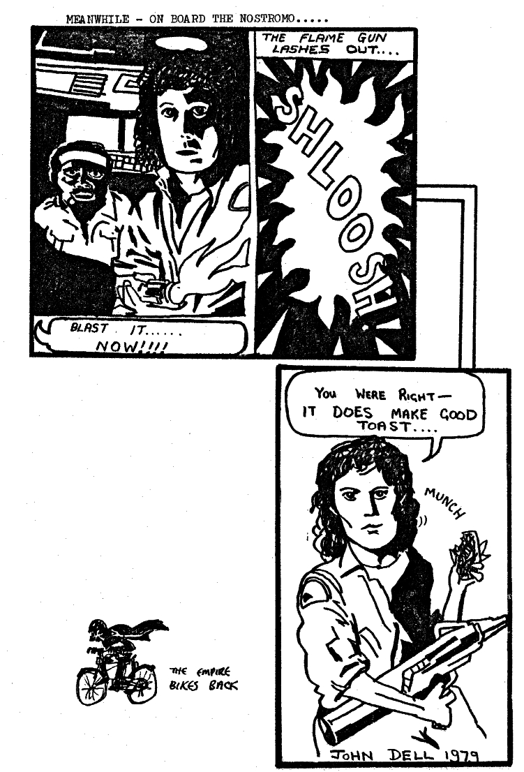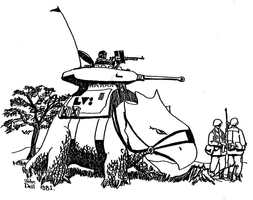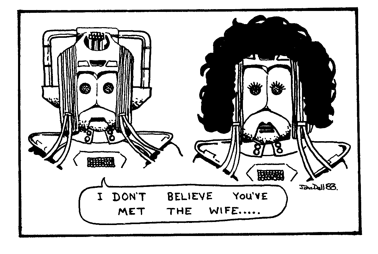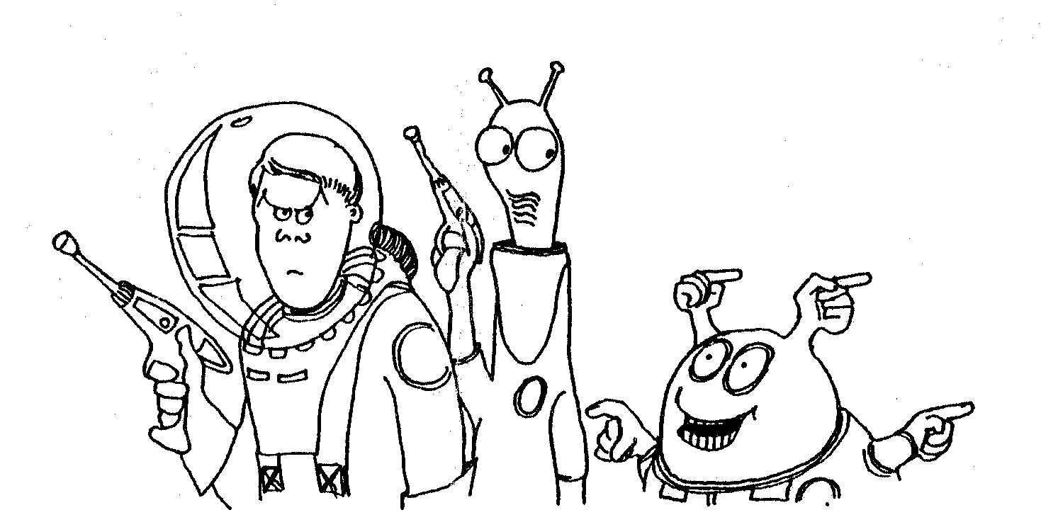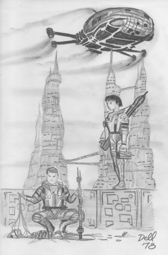 Some science fiction themed illustrations and cartoons by John "Dinger" Dell. Back in the late 1970's and early 1980's I did a lot of paintings, cartoons and illustrations with a science fiction theme. The paintings I used to sell at SF conventions (if I was lucky the money would cover the cost of attending the convention). I don't actually have images of most of the paintings I sold. I guess there is a chance some are still out there somewhere. I also contributed cartoons and illustrations to various fanzines. Here are just a tiny number of the hundreds I produced. Hope you enjoy looking at them.