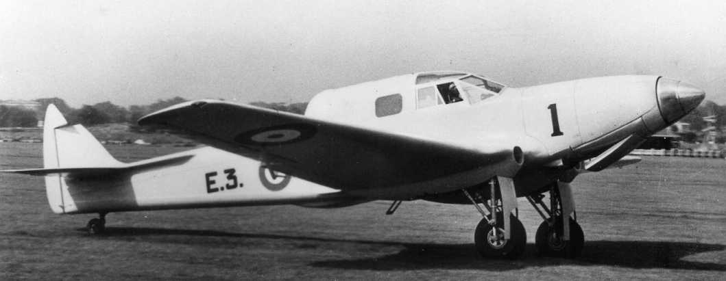 The de Havilland Don prototype "E3" as originally built, with a dummy turret. It should also be noted that the dark colour of the aircraft is due to the use of orthochrome film, it was actually bright yellow.