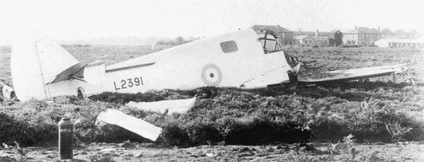 The wreck of Don L2391 after its crash at Martlesham Heath in September 1938. Amazingly, the pilot escaped with only minor injuries.