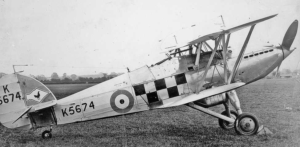 The Classic Fury - Epitomising the RAF of the 1930s, yet a complete failure in air exercises when tried in its original role of "interceptor". Note the lack of any radio aerial, navigation lights or windmill generator.