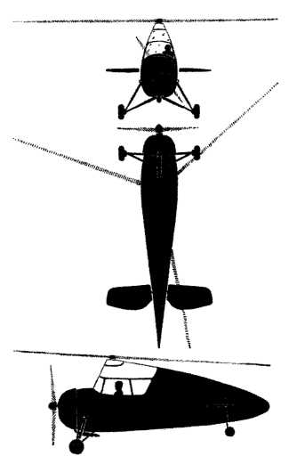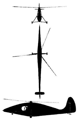 ⁴ The Niagara III engine specified for Hafner's small, two-seat, cabin autogyro was used on another British small, two-seat, cabin autogyro that actually flew, the Westland CL 20, built for the Cierva Company. It was not very successful, not being able to fly higher than 90 metres (300 feet) on the power of the engine. Hafner's design looks smaller and lighter than the CL20.