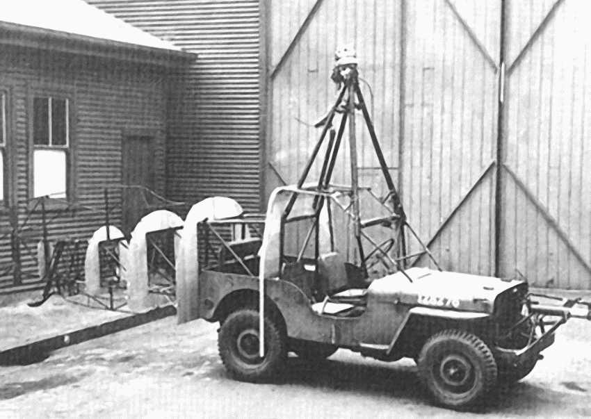 The Rotabuggy prototype during trials at Sherburn-in-Elmet, near Leeds, home of the Airborne Forces Experimental Establishment (AFEE). In the background, you can see a Horsa glider. The Horsa could carry two Jeeps without passengers or one Jeep with passengers and a load of ammunition.