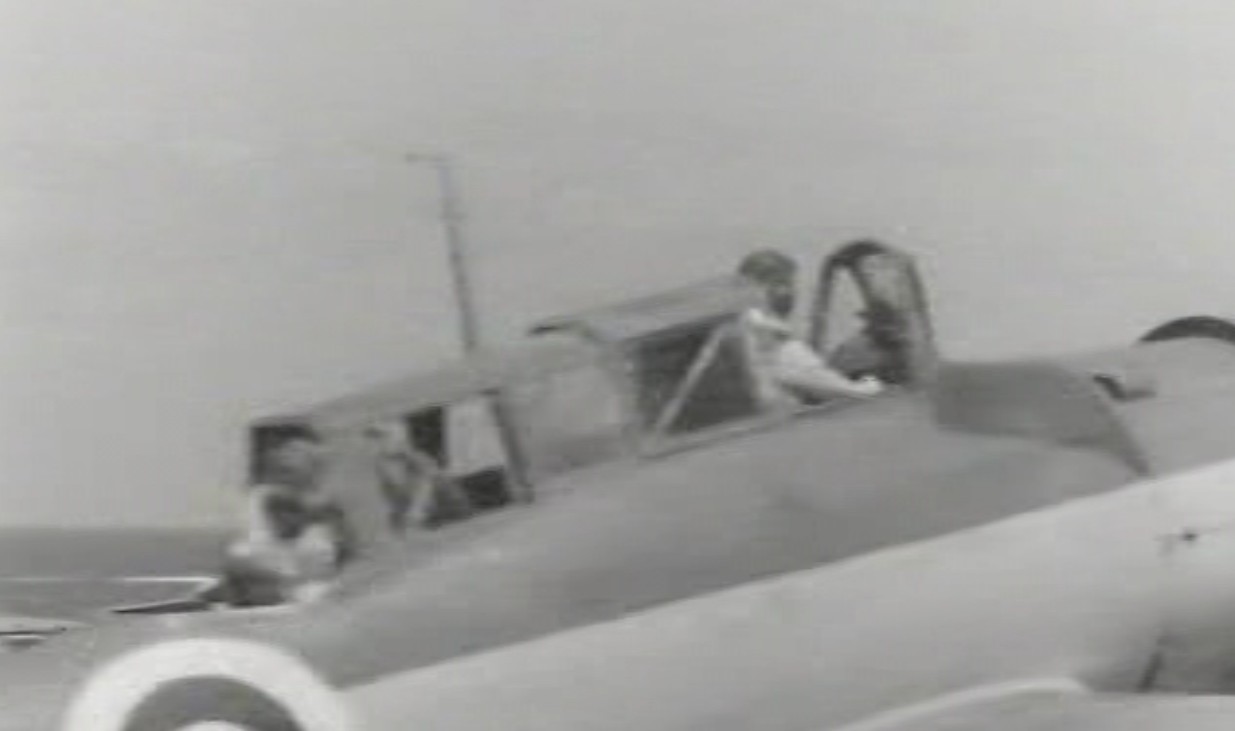 Yet another, rather blurred, still from "Ships with Wings". The flat-fronted windscreen of the Skua comes in for a lot of unwarranted criticism for being drag-inducing. This photo shows how the side panels were sharply raked back to reduce wind resistance, while the triangular front panel provided an excellent view forward, essential for takeoffs and landings from an aircraft carrier. Note that the pilot's seat could be elevated so that he could sit with his shoulders well above the cockpit sill, to take advantage of that view. The Skua's windscreen was noted for being able to shed rain and seaspray, keeping a clear view ahead for the pilot in bad weather conditions.