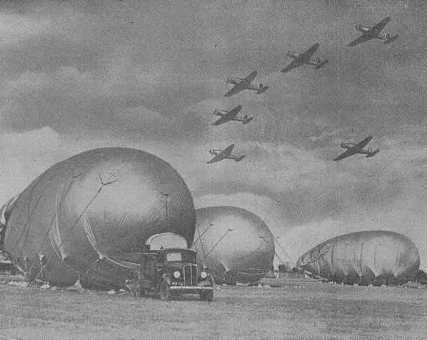 This photo is of Skuas overflying Barrage Balloons that were also to be a feature of the airshow.