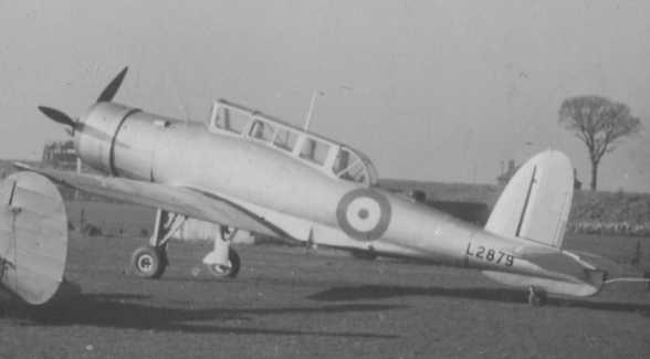 Production Skua L2867. A photo taken at Blackburn's factory airfield at Brough, again easily identified by the tree lined ridge on the horizon. In this side view you can see that the undercarriage stood vertical when on the ground , unlike most WW2 tailwheel aircraft. Also clearly seen is the slight curve to the top of the fuselage which put the pilot in an elevated position, giving an improved view over the nose, ideal for carrier landings. Apologies for the crease in the original photo.