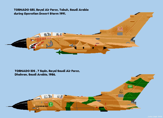 In RAF service the IDS version is known as the GR1. The GR1A reconnaissance version became available just in time to help track down Iraqi Scud missile launchers during the Gulf War. The GR1B is a new dedicated maritime strike version that will take over from the Buccaneer the role of attacking ships with the Sea Eagle missile. The Luftwaffe operate their own reconnaissance version of the Tornado.