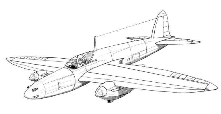 The Air Ministry's favourite twin-engined contender for F37/35; the elegant, long-nosed Supermarine Type 313 would have had to adopt the Rolls-Royce Peregrine when the steam-cooled Rolls-Royce Goshawk engine was dropped. Supermarine simply did not have the design staff and workshop resources to cope with the development of the 313 alongside the Spitfire and 316/7/8 bomber. In the end, only the Spitfire reached production.