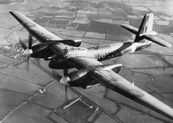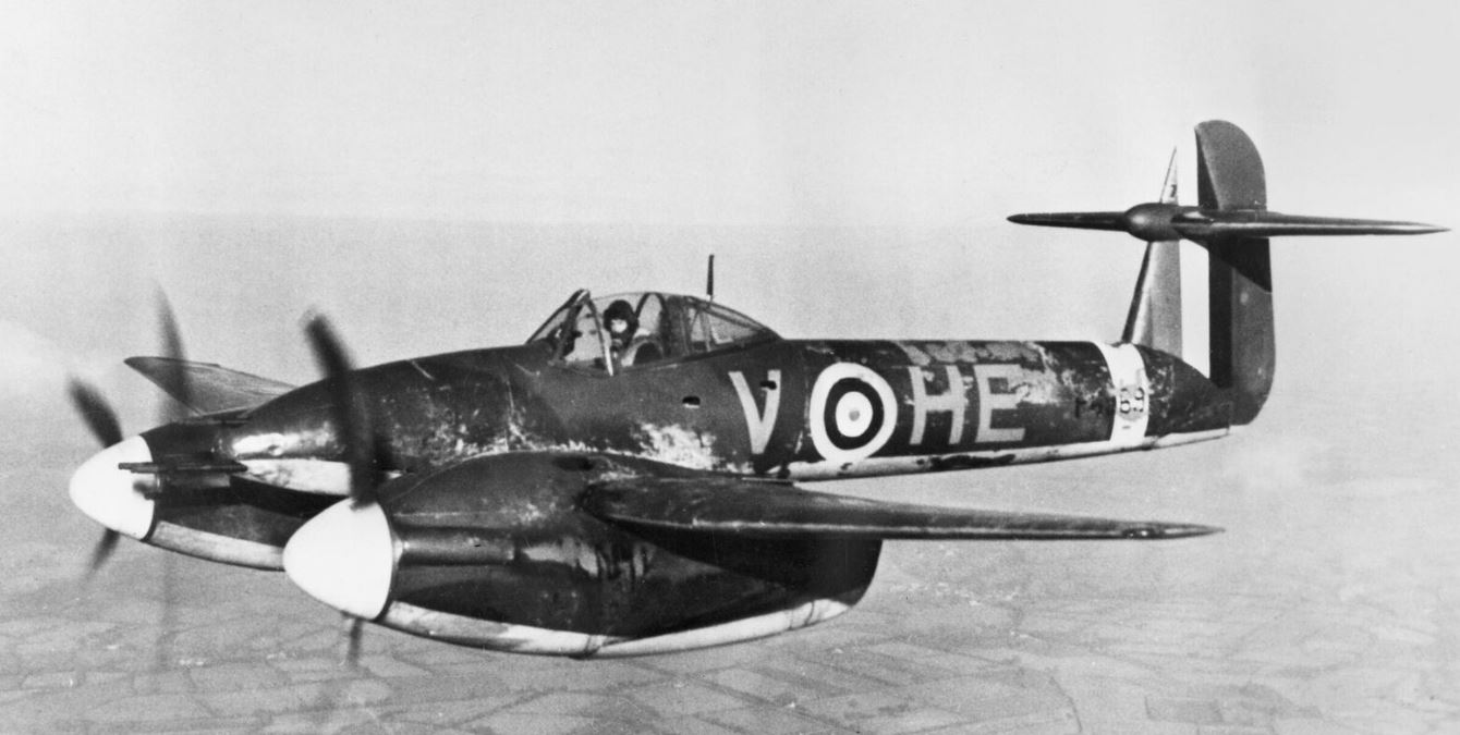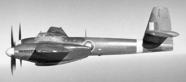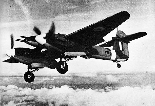Petter presented two designs of brand-new twin-engined fighter to Air Ministry specification 6/39, issued in April 1939, to take the even more powerful Rolls-Royce Griffon engine. The first design had tractor propellers and a tailwheel and could be powered by Merlin engines if no Griffons were available. The second had pusher propellers and a nosewheel undercarriage and was a strictly Griffon-only design. This specification was one of those dropped when Beaverbrook took over as head of the Ministry of aircraft production in 1940 and ordered production concentrated on only a few types. Poor performance at high altitude was the Whirlwind's big disappointment to the RAF. As the Battle of Britain petered out, at the end of 1940, combats were happening at higher and higher altitude. The Luftwaffe used the excellent high-altitude performance of their latest DB601N engined Bf109E4/N, then E-7 and the first Bf109F models to great advantage. They were also using the Junkers 86R high altitude photo-reconnaissance aircraft for overflights of Britain and would go on to use them for the occasional nuisance raid. The British feared that in 1941 the Battle of Britain would start again where it left off and therefore went to great lengths to prepare for high-altitude combat (the Spitfire Mk VI and VII were swiftly developed because of this fear). Even when the Germans invaded Russia in 1941, most military observers believed the Russians would be swiftly defeated and the Luftwaffe would be back in strength over British skies in the Autumn of 1941 or Spring of 1942. Therefore, any new British fighter needed to have the ability to fight at high altitude. As early as June 1940, Specification F4/40 had been issued for a new high-altitude fighter, and the importance of the specification grew over the following months. The aircraft that Westland tendered for the specification had many similarities with the Whirlwind, it shared the same general lines, but on a much larger scale. Called the Welkin (an Old English word for the sky or heavens), it first flew in December 1942, only 30 months after the issuing of the specification; quite an achievement given the many issues of high-altitude flying (pressure cabins were a new technology then). It was fitted with a pair of Merlin engines that drove propellors that rotated in different directions. By the time the Welkin entered production, the trend for combat at higher and higher altitude had reversed. Combats were now increasingly taking place at low and medium altitude. The expected availability of the Gloster Meteor jet, with its pressurised cockpit and impressive climb rate to great altitude, also threatened to make the Welkin superfluous (it is ironic that Petter helped with the design of the Meteor's pressurised cockpit⁹). Thus the Welkin saw little use; production was 101 airframes but only 75 of these were fitted with engines. Like the Whirlwind before it, the existence of the Welkin was kept secret. Details about it were only revealed after the war had ended.