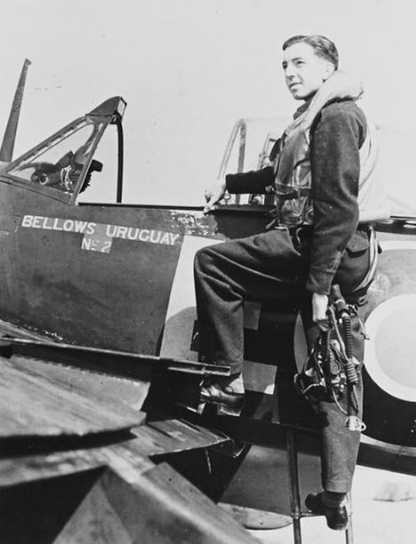 A pilot climbs onto Whirlwind P7111 named "Bellows Uruguay No 2". The "Fellowship of the Bellows" was a fund-raising group started in South America by expat Britons and British sympathisers to raise money for the Royal Air Force. No 263 Squadron was equipped with aircraft paid for by the fellowship. Notice the cooling flap on the wing, raised to its fully open position. The metal ladder would be retracted up into the fuselage.
