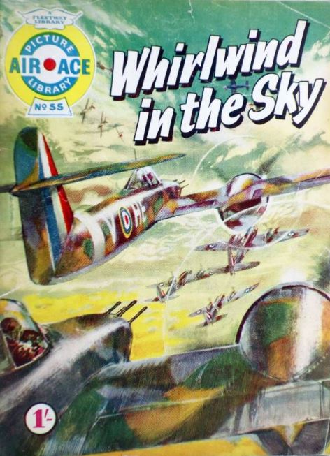 Cover of the "Air Ace Picture Library" Comic No 55 "Whirlwind in the Sky" from about 1960. It may well be this comic that is responsible for popularising the "team of men, two hours to change a tyre" trope so often quoted about the Whirlwind, since it features in the storyline. The tagline on the first frame of the comic goes... "It was a pilot's dream but a mechanic's nightmare...".