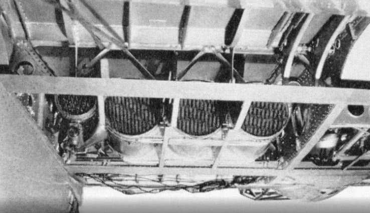 The inefficient circular radiators housed inside the wing of the Whirlwind. The smaller one on the left is the oil cooler.